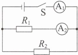 13. (2024·重庆中考B卷)将阻值为10Ω的电阻$R_1$与另一电阻$R_2$接入电源电压恒定的电路中,如图所示。闭合开关S,电流表$A_1$的示数为0.45A,电流表$A_2$的示数为0.3A。求: