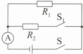 9. 如图所示的电路中,电源电压保持不变。只闭合开关S,电流表的示数为0.2A,再闭合开关$S_{1}$,电流表的示数变化了0.3A。那么闭合开关S、$S_{1}$后,在相同的时间内,电流通过电阻$R_{1}$、$R_{2}$所做的功之比是 (
