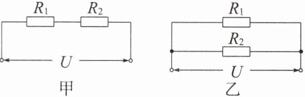 14. 如图甲所示,电源电压不变,将定值电阻$R_{1}$和$R_{2}$串联后接在电源上,电阻$R_{1}$消耗的功率为3W,电阻$R_{2}$消耗的功率为6W,若将它们并联后仍接在该电源上,如图乙所示,此时定值电阻$R_{1}$消耗的功率为