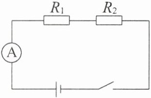 12. 如图所示的电路中,电源电压为6V,电阻$R_{1}=10Ω$。开关闭合后,电阻$R_{1}$消耗的电功率为0.9W。求: