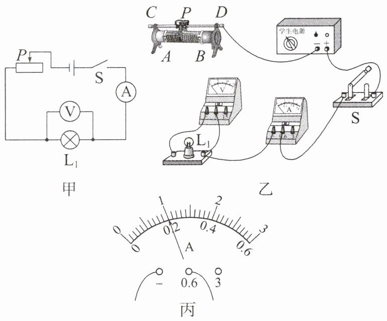 (7)排除故障后,小亮按实验规范操作,刚闭合开关S时,电压表的示数为1V,电流表的示数如图丙所示,为________A,滑动变阻器的最大阻值为________Ω;调节滑片P得到表格中的数据,灯泡L1的额定功率为________W。