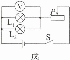 (12)实验室有两个额定功率相同的小灯泡,额定电压分别为2.5V和1.5V,但铭牌都无法辨认,为了辨别它们,小芸用实验器材连成如图戊所示的电路,闭合开关S,调节滑片P,发现小灯泡L1比L2亮,则小灯泡L1的额定电压为________V。(忽略温度对小灯泡电阻的影响)
