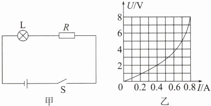 2. 如图甲所示,将灯泡L和阻值为10Ω的电阻R接在6V的电源上,图乙是灯泡L的U-I图像,结合图中信息可知(