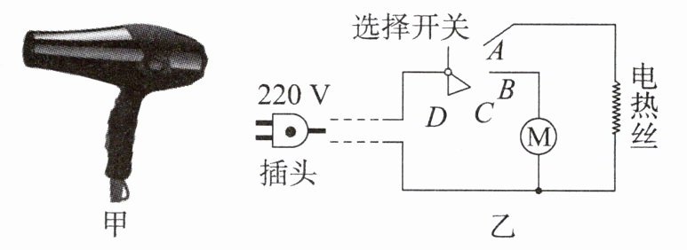 7. 小李家的一个家用电吹风机如图甲所示,其简化电路如图乙所示,铭牌上的主要参数见下表。