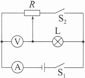 6. 如图所示的电路中,灯泡L标有“6V 6W”字样(设灯泡电阻不变),滑动变阻器R的最大阻值为20Ω,电源电压保持不变,电流表的测量范围为0~3A,电压表的测量范围为0~3V。将滑片滑到最左端,闭合开关$S_{1}$、$S_{2}$,电流表的示数为1.3A。断开开关$S_{2}$,只闭合开关$S_{1}$,在电路安全范围内移动滑片,当滑片从左端向右移动的过程中,电压表的示数与电流表的示数的乘积