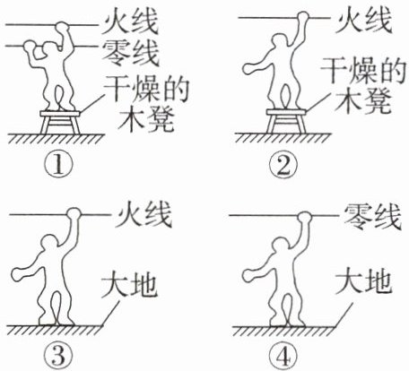 6. 如图所示的情况中不会发生触电事故的是(重要提示:千万不要尝试或模仿!) (