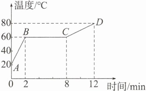 1. 用稳定的热源给一个固体均匀加热,不考虑热量损失,得到它的熔化图像如图所示,若该物体在AB段吸收的热量为$6×10^{4}J$,则物体在BC熔化阶段吸收的热量为