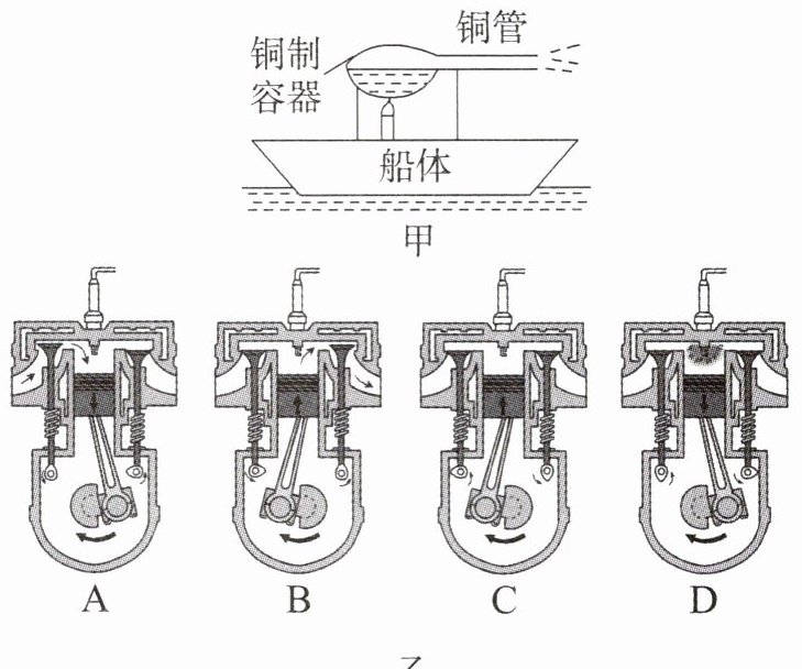 (3)铜管向右喷蒸汽,“船体”向左行驶,这个过程中的能量转化与四冲程汽油机的