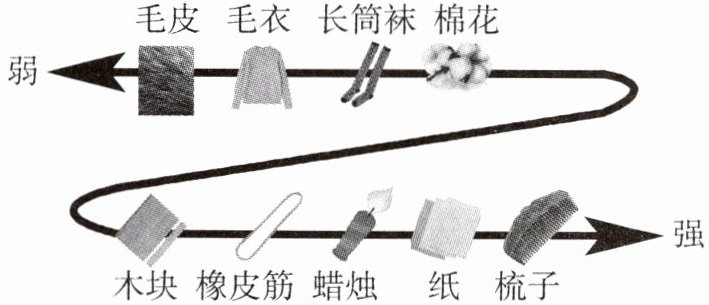 17. 部分不同物质的原子核对核外电子束缚能力强弱的排序图如图所示,毛皮与图中______