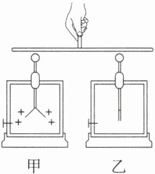 10.取两个相同的验电器甲和乙,使甲带正电,乙不带电。如图所示,可以看到甲的金属箔张开,乙的金属箔闭合,用橡胶棒把甲和乙连接起来会发现验电器金属箔的张角 (