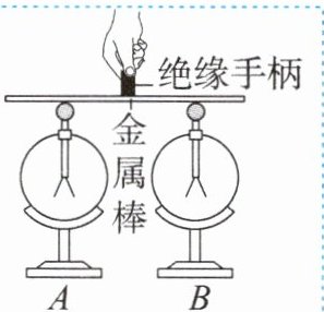 电;图中是用带有绝缘手柄的金属棒将验电器A与验电器B连接起来的瞬间,金属棒中的电流方向是从B到A