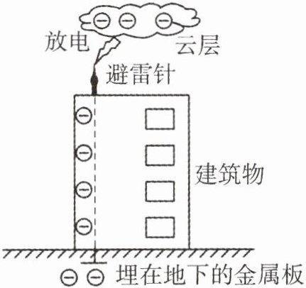 9.(2024·广东广州中考)如图所示,带负电的云层靠近建筑物上的避雷针时,向避雷针剧烈放电形成雷电,下列说法正确的是 (