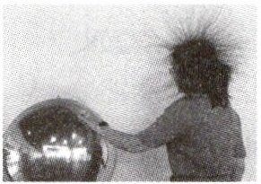 13.如图所示的起电机叫范德格拉夫起电机,启动起电机后,金属圆球上将会带上密集的静电,为使图中女孩的头发飘扬起来,她站立的位置上