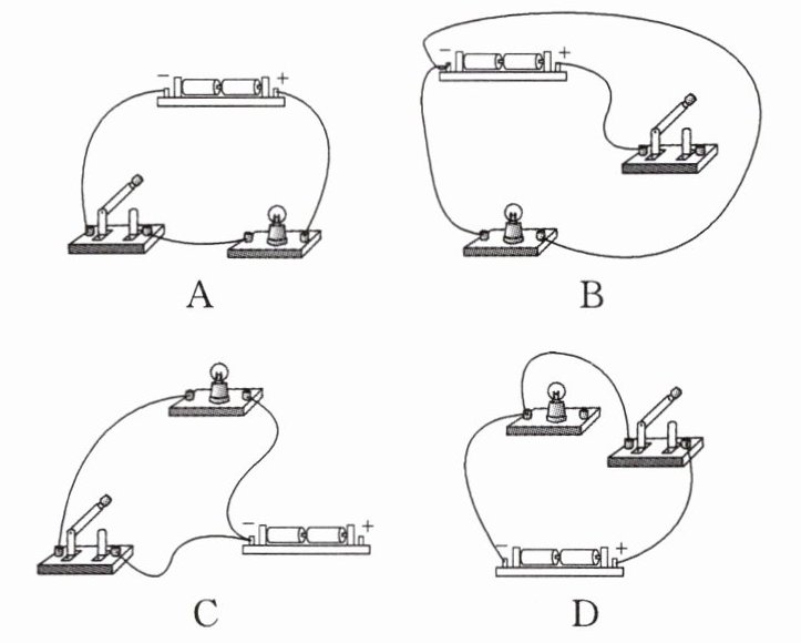 2. 在如图所示的四个电路图中,符合电路基本组成条件且连接正确的是 (
