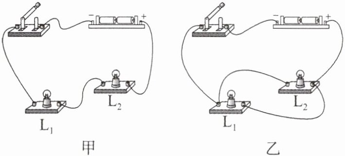 C.在乙电路中,开关闭合后,用导线直接连接灯泡L₁的两个接线柱,灯泡L₁不发光,灯泡L₂发光