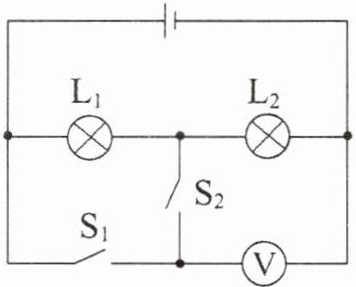 变式 在第3题的电路图中,电源电压保持不变,当开关$S_{2}$闭合、$S_{1}$断开时,电压表的示数是3V,当开关$S_{2}$断开、$S_{1}$闭合时,电压表的示数是5V,当开关$S_{1}$、$S_{2}$都断开时,灯$L_{1}$和$L_{2}$两端的电压分别是