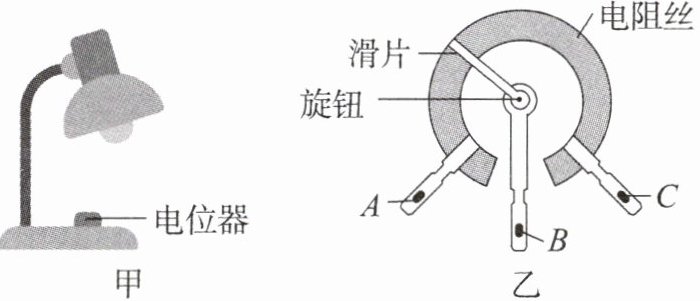 5.(2025·长寿中学期中)电位器实质上是一种变阻器。图甲为某调光台灯,图乙为该台灯用到的电位器的结构图,A、B、C为电位器的三个接线柱,转动滑片可调节灯泡亮度。下列分析正确的是 (