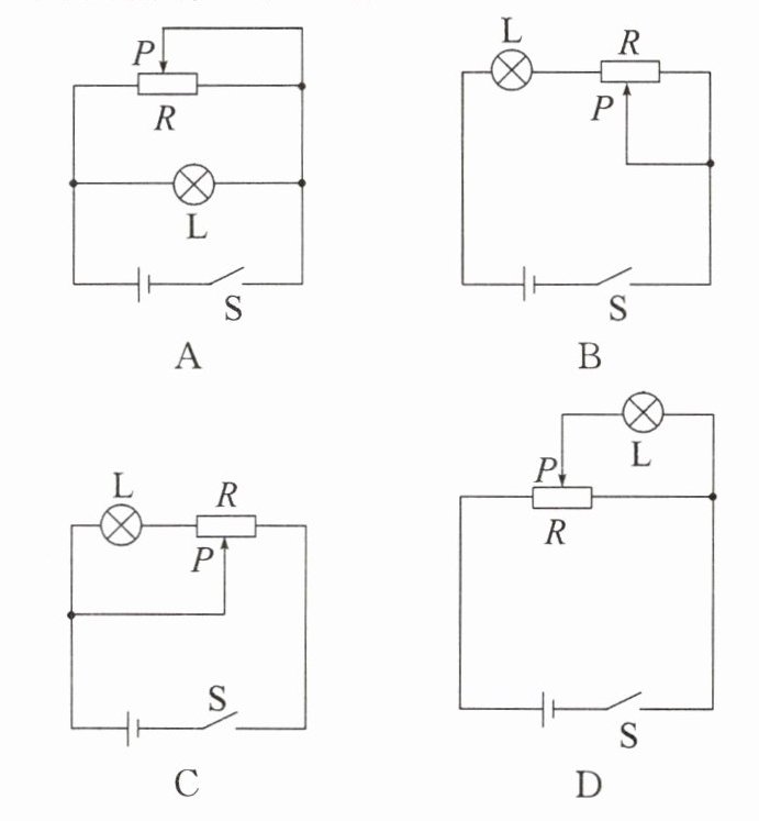 13.(2023·重庆十一中期中改编)如图所示,在保证电路安全的情况下,一定能用滑动变阻器调节小灯泡由亮到灭的是 (
