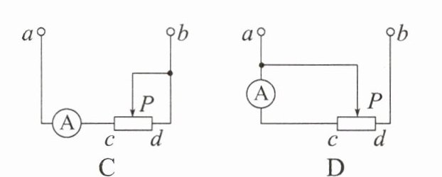 11.如图所示的电路中,a、b两点间电压不变,当滑动变阻器的滑片向右移动一段距离后,下列电路中电流表的示数会变小的是 (