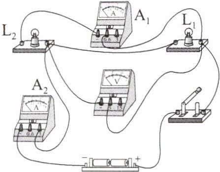 联,若电流表$A_{1}$的示数为0.3 A,电流表$A_{2}$的示数为0.9 A,则通过灯$L_{1}$的电流为0.6