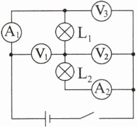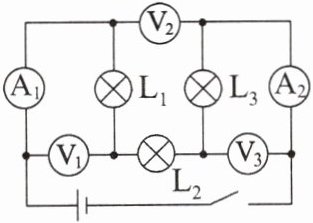 A;若电源电压为12 V,电压表$V_{1}$的示数为3 V,电压表$V_{3}$的示数为5 V,则电压表$V_{2}$的示数为12