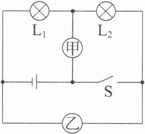 表;若开关S断开时,两灯正常工作,则甲是电流