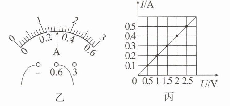 (7)实验中测得五组数据,并绘制出定值电阻R的I-U图像,如图丙所示。可得出实验结论:________。