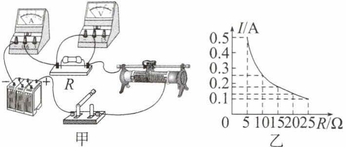 (4)多次改变电阻R的阻值,移动滑动变阻器的滑片,使电压表的示数保持不变,记下电流表的示数,得到如图乙所示的电流I随电阻R的变化图像。由图像可得:导体两端的电压一定时,通过导体的电流与导体的电阻成________。实验过程中滑动变阻器两端的电压U=________V。