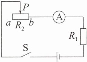 12. 如图所示的电路中,电源电压保持不变,电阻$R_{1}=10Ω$。闭合开关S,移动滑动变阻器$R_{2}$的滑片P到最右端b时,电流表的示数为0.6A;移动滑片P到最左端a时,电流表的示数为0.2A。电源电压为
