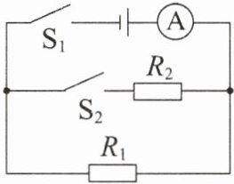 (2)当开关$S_{1}$和$S_{2}$都闭合时,$R_{1}$、$R_{2}$并联,电流表测干路的电流,通过电阻$R_{2}$的电流
