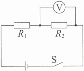 10. (2025·重庆110中学期中)如图所示,电源电压恒为12V,电阻$R_{1}$为20Ω,当开关S闭合后,电压表的示数为8V。求: