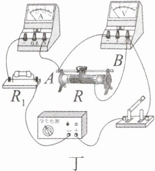 (13)小张用如图丁所示的实验电路又做了一个实验。电源电压不变,$R_{1}$为定值电阻,调节滑动变阻器R的滑片,得出几组数据整理后见下表。发现可以将电压表改成能直接读出电阻的电表,则他在5.0V处应该读出的电阻为________Ω。