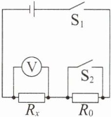 2. (2025·西大附中月考节选)实验小组的同学利用已知电阻$R_{0}$,设计并连接了如图所示的电路来测量未知定值电阻$R_{x}$的阻值。主要步骤如下: