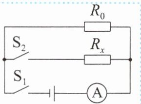 变式 (2025·渝北中学期中改编)小强用一个电流表和一个已知电阻$R_{0}$来测量未知电阻$R_{x}$的阻值,他设计的电路图如图所示,请将下列实验步骤补充完整。