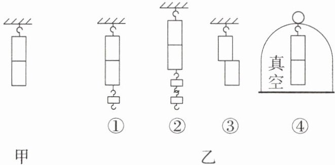)①挂一个钩码,铅柱不分离;②挂两个钩码,铅柱不分离;③铅柱略错开,铅柱不分离;④置于真空罩内,铅柱不分离