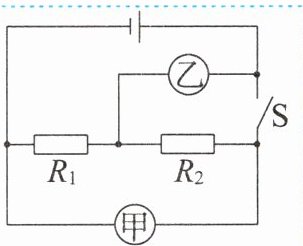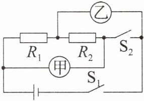变式1 如图所示,已知定值电阻$R_{1}:R_{2}=2:3$,当开关S闭合,甲、乙两电表均为电压表时,两电表的示数之比$U_{甲}:U_{乙}=$