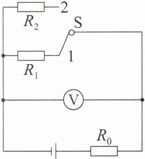 6. (科学推理)如图所示的电路中,电阻$R_{1}=12Ω$,$R_{2}=6Ω$。当单刀双掷开关S置于位置1时,电压表的示数为3V。当单刀双掷开关S置于位置2时,电压表示数的可能值为(