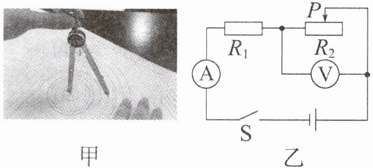 2. (2024·江津区期末)某智能化数显式圆规如图甲所示,它可以直接显示出所画圆的半径大小r。其内部等效电路如图乙所示,$R_{2}$为可调节阻值的滑动变阻器,当r增大时,滑片P向右移动,数显表盘示数变大。下列说法中正确的是 (