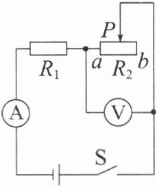 2. 如图所示的电路中,电源电压为18V且保持不变,定值电阻$R_{1}$的阻值为12Ω,滑动变阻器R的规格为“100Ω 1A”,电流表的测量范围为0~0.6A,电压表的测量范围为0~15V,该电路工作时,要求各元件均安全。闭合开关S,在滑动变阻器R的滑片P滑动的过程中,电压表示数的变化范围是