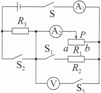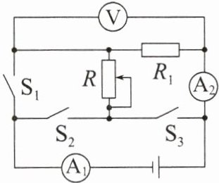 V。当闭合开关$S_{1}$、$S_{3}$,断开$S_{2}$时,在保障各电路元件安全的前提下,移动滑动变阻器的滑片,电流表$A_{1}$的示数范围为0.9~2.6