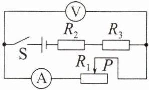7. 如图所示的电路中,电源电压保持不变,$R_{2}$、$R_{3}$是两个定值电阻。闭合开关S、滑动变阻器的滑片P向左移动。当电流表示数变化量的绝对值为ΔI时,电压表示数变化量的绝对值为ΔU;当电流表示数变化量的绝对值为$ΔI'$时,电压表示数变化量的绝对值为$ΔU'$。若$ΔI<ΔI'$,则(