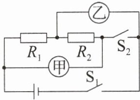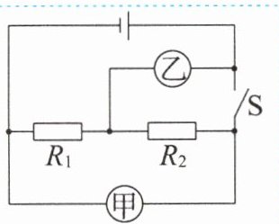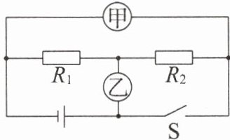 变式1 如图所示,已知定值电阻$R_{1}:R_{2}=2:3$,当开关S闭合,甲、乙两表均为电压表时,两表的示数之比$U_{甲}:U_{乙}=$
