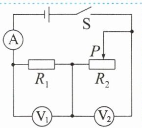 (2)只闭合开关S和$S_{1}$,滑动变阻器的滑片P置于某一位置时,电压表的示数为1V,电流表的示数为0.2A,定值电阻$R_{2}$的阻值为