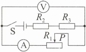 8. 如图所示的电路中,电源电压保持不变,$R_{2}$、$R_{3}$是两个定值电阻。闭合开关S、滑动变阻器的滑片P向左移动。当电流表示数变化量的绝对值为ΔI时,电压表示数变化量的绝对值为ΔU;当电流表示数变化量的绝对值为$ΔI'$时,电压表示数变化量的绝对值为$ΔU'$。若$ΔI<ΔI'$,则(