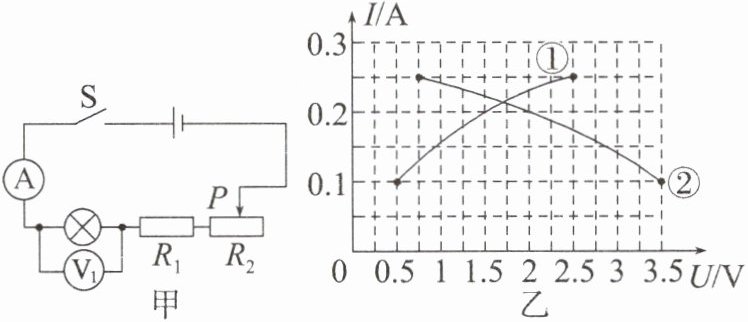 Ω的电阻后,滑动变阻器$R_{2}$的滑片P可自由移动,灯泡能正常发光且安全。