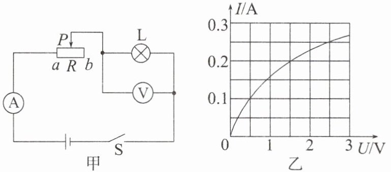 6. 如图甲所示,电源电压恒为3V,小灯泡L标有“2.5V”的字样,滑动变阻器R标有“10Ω 1A”的字样,小灯泡L的I-U图像如图乙所示。闭合开关S,下列判断正确的是(