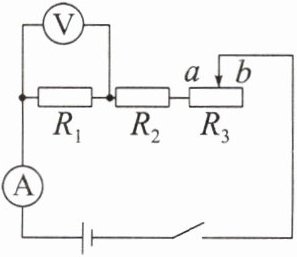5. *如图所示的电路中,电源电压保持不变,电阻$R_{2}$为$20Ω$。闭合开关,当滑动变阻器$R_{3}$的滑片在$b$端时,电压表的示数为$3V$;当滑片移到中点时,电流表的示数为$0.45A$;当滑片移到$a$端时,电压表的示数为$9V$。电阻$R_{1}$为