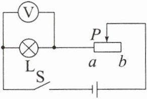 4. 如图所示的电路中,电源电压不变,滑动变阻器的滑片$P$从中点移到$b$端时,电压表前后示数之比为$8:5$。已知滑动变阻器的阻值$R_{ab}=60Ω$,忽略灯$L$的电阻随温度的变化,则灯$L$的电阻为______