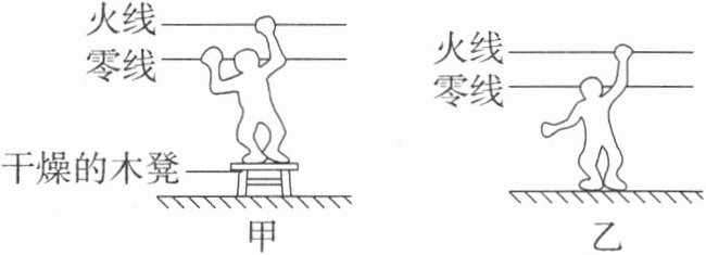 )A.发生如图甲所示的触电时,漏电保护器不起作用