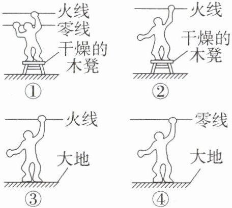 6. 下图所示的情况中不会发生触电事故的是(重要提示:千万不要尝试或模仿!) (